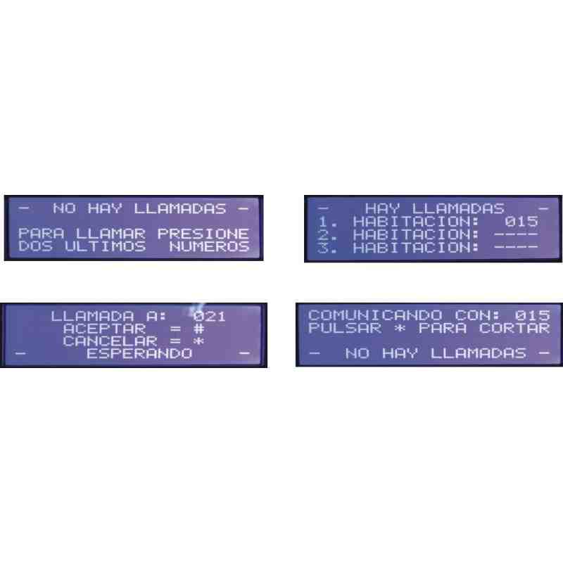 Permet la comunicació acústica amb les habitacions. Disposa de teclat per fer trucades a les habitacions així com indicació per mitjà de la qual s'informa del nombre d'habitació que està sent atesa i també de l'existència o no existència de més trucades en espera.