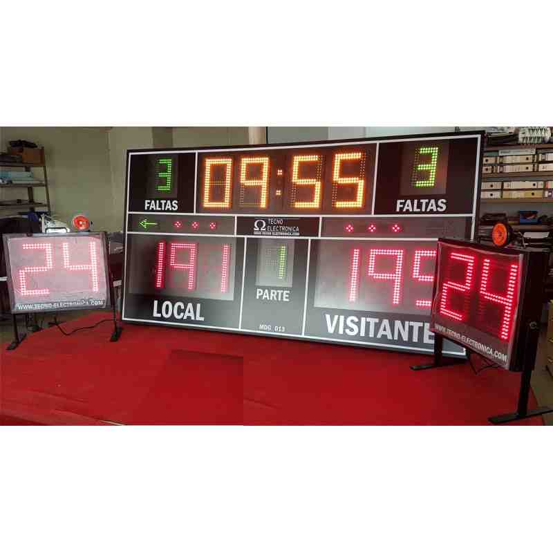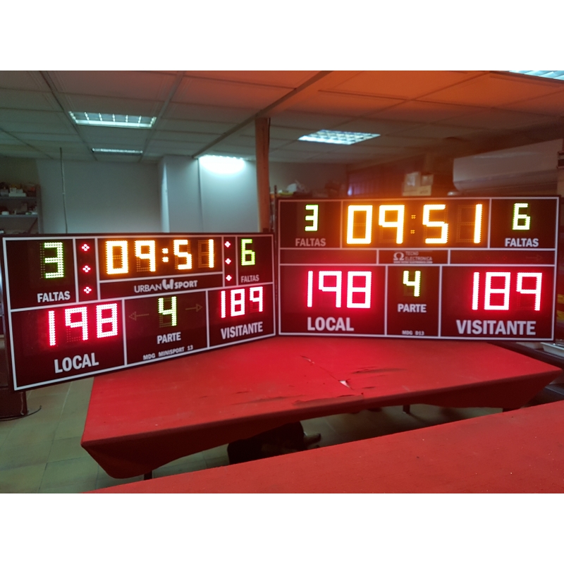 Multisport electronic scoreboard sport designed to be permanently installed on any wall using hardware (anchors, screws and plugs) or by foot portable form. The dialer screen includes: