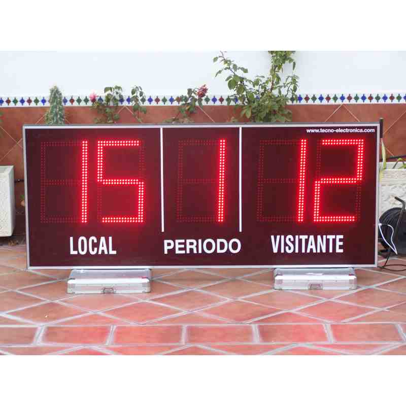 Marcador deportivo electrónico para exterior de cinco dígitos de 27 cm. de altura para su utilización en exteriores, con luz solar.Adecuado para deportes como fútbol, rugby, hockey y polo.