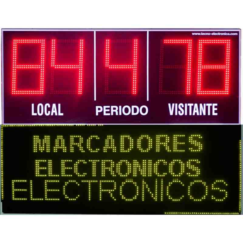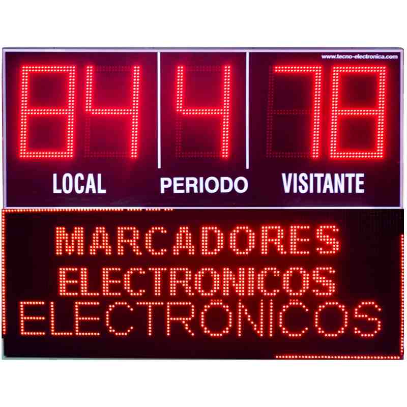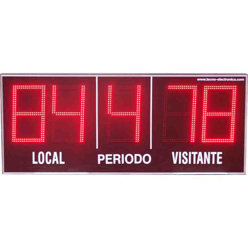 MDG EXT D5N - Marcador electrónico deportivo especialmente diseñado para fútbol, Rugby y Hockey. Este tipo de marcador electrónico está especialmente diseñado para funcionamiento en exterior, soportando las condiciones climáticas y permitiendo una visión perfecta con incidencia directa de luz solar. Sus cinco dígitos led de 27 cm. de altura permiten la indicación de tanteo de local y visitante con cuenta desde 0 a 99 y periodo en juego.