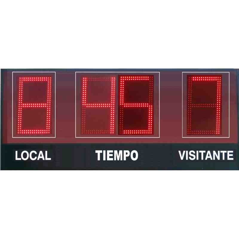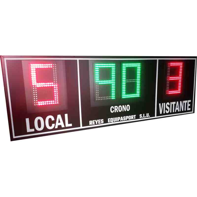 Tableau de bord sportif électronique pour extérieur à quatre chiffres de 18 cm. hauteur pour une utilisation en extérieur, avec la lumière du soleil. Convient aux sports comme le football, le rugby, le hockey et le polo.