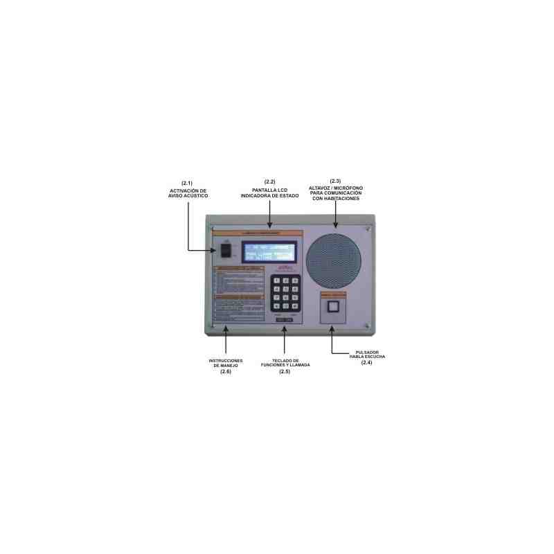 Consente la comunicazione con acustica della stanza. Dispone di tastiera per effettuare chiamate e visualizzare le camere attraverso il quale riporta il numero di camere da servire così come l'esistenza o la non esistenza di più chiamate in attesa. Capacità fino a 255 camere. Fanno la chiamata in attesa notifica via ottico-acustico di segnalazione.