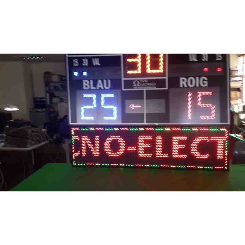microprocessore di controllo comando Consiglio controllata con precisione, 11.059 MHz Funzionamento ad alta e schermo LCD per la programmazione inclusi nel caso di trasporto, con tasti altamente sensibili e antirrobote. Marcatore schermo Comunicazione - tabella di controllo ha visto controllabilità una radio (range circa 75 metri). Possibilità di selezionare due giochi: In forma di SCALE I CORDA permette di impostare il numero di punti che il gioco è giocato in multipli di 5. Quindi permette l'introduzione del punteggio di ogni gioco da tre punti di luce per ognuna delle squadre indicanti 15, 30 e VAL, se una squadra ha l'indicazione Val e ottenere un punto nuovo schermo riflette aumento di cinque punti guadagnati dalla squadra in questione. Se una squadra ha la VAL indicazione e la squadra avversaria ottiene un punto, il sistema riduce il punteggio della squadra che era con l'indicazione Val di lasciare il punteggio di 30-30 posizione. PUNTEGGIO Nelle funzioni della modalità di squadra come marker di pelota, che consente la selezione dei punti a cui viene giocato il gioco e usato i punti luce per ogni squadra per indicare il numero di calci consecutivi realizzati da ogni squadra. Quando i cinque punti di luce su un computer è acceso, viene fatto automaticamente rimuovere passaggio dal possesso alla squadra avversaria.